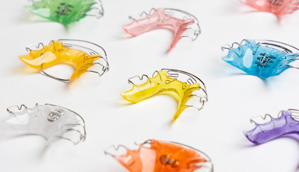 治療は、矯正装置をお口に入れることができる小学校1~2年生くらいから開始することができます。床矯正はメリットは、虫歯になりにくいことや、好きなものが食べられる点です。デメリットは、不注意による紛失や破損が挙げられます。当院では、お子さんが好みカラーの可愛い床矯正装置が選べます。